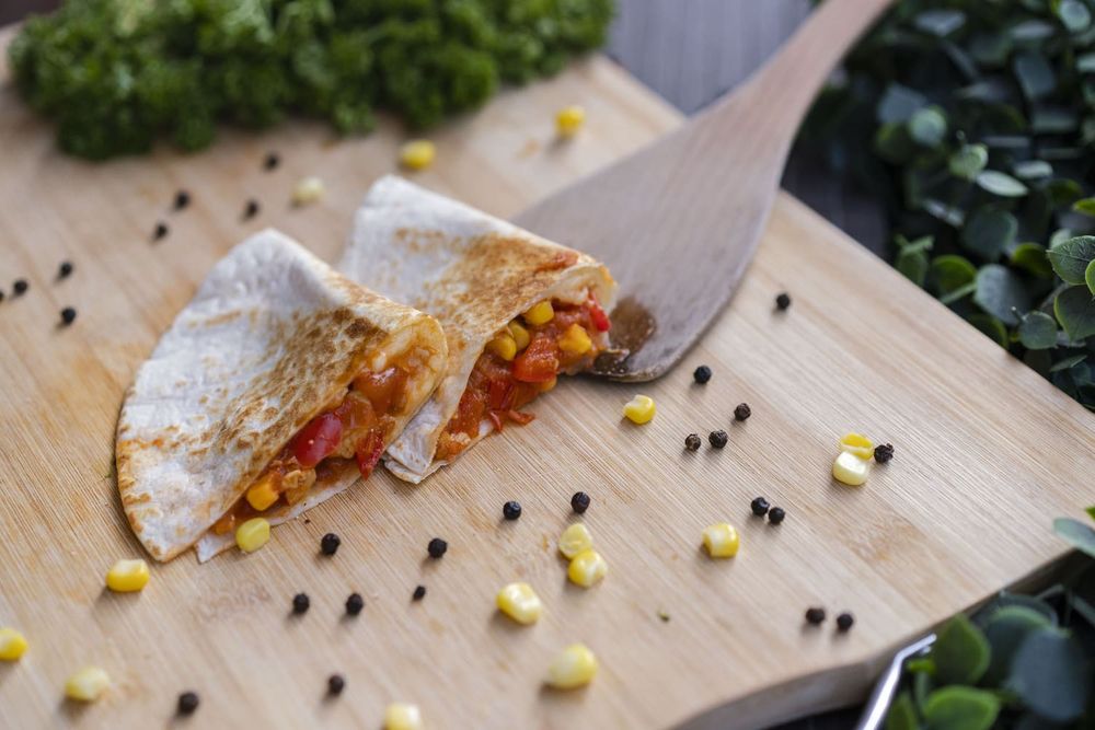 🌯 Tortilla stuffed with chicken, tomatoes, bell pepper, corn, onion & cheese. Served warm with a savory dipping sauce.